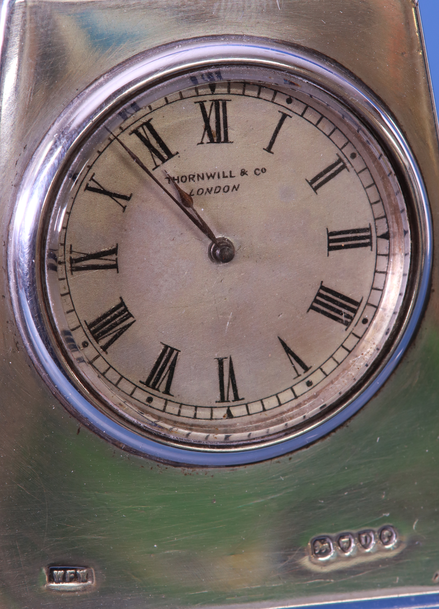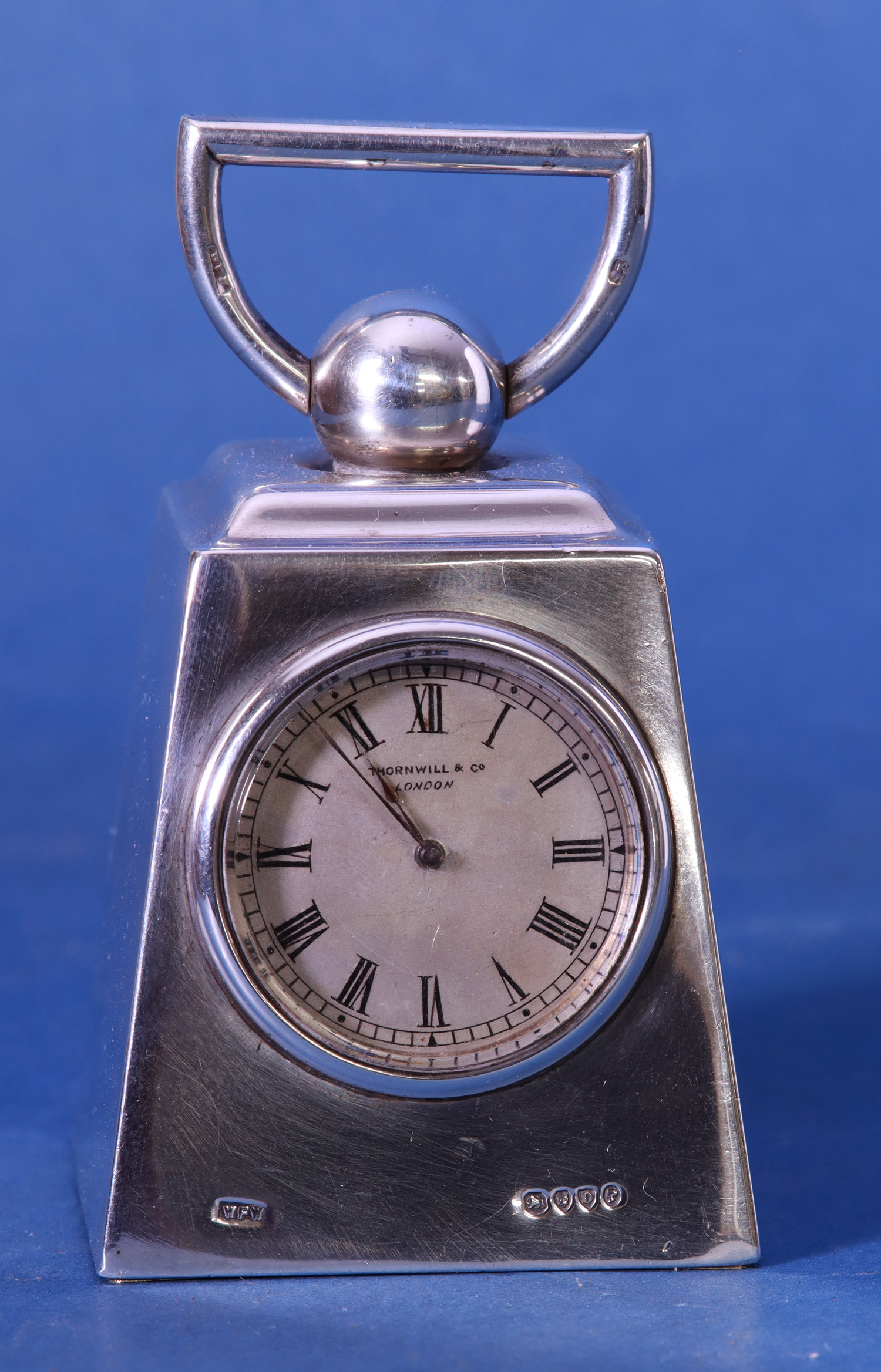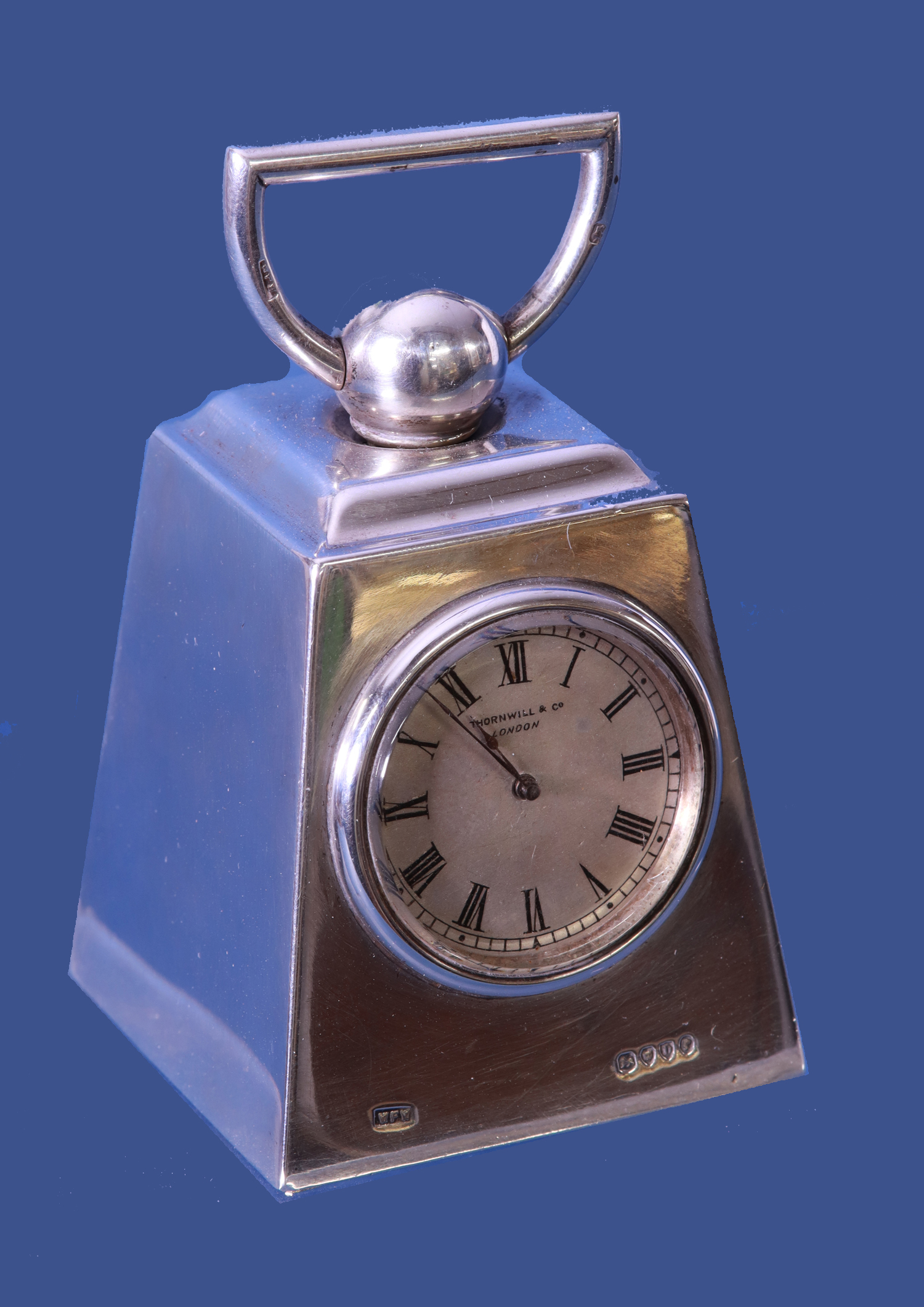 The silvered dial has Roman numerals for the hours, steel-cut hands and is signed Thornwill& Co,, London.