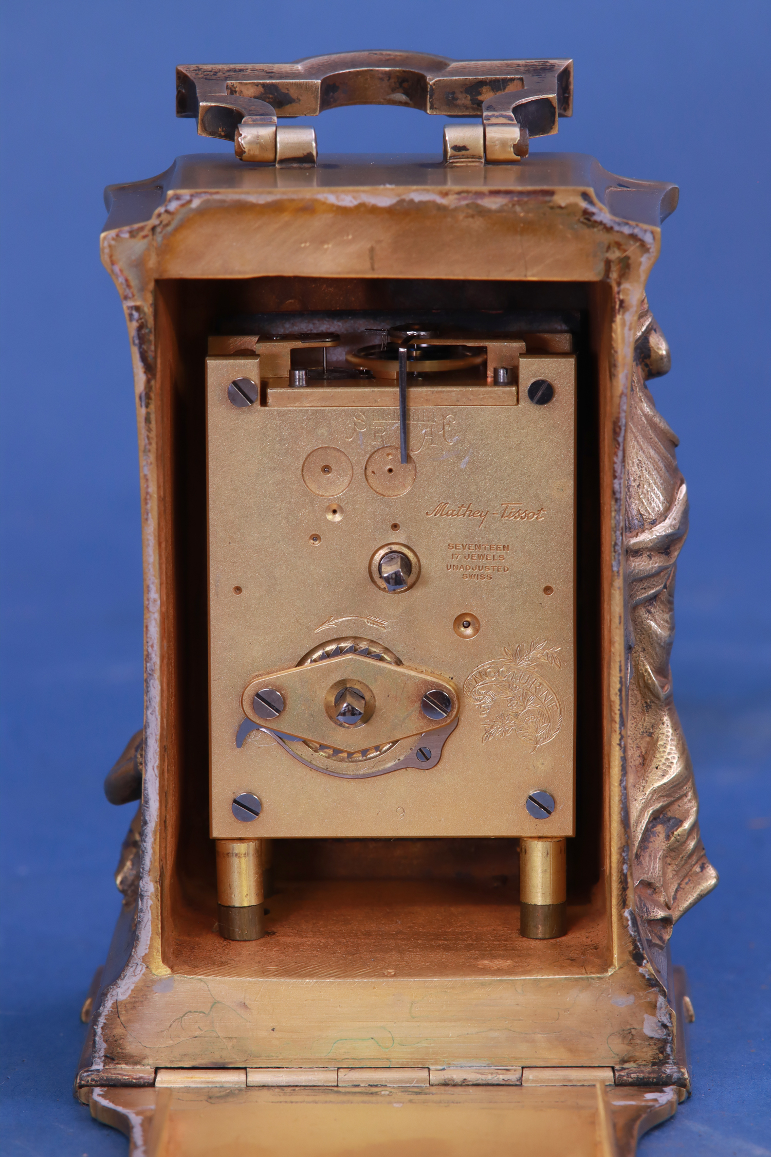 The high-quality gilt movement has the balance platform on top and is wound and set off the backplate. It is stamped ‘Mathey-Tissot’, 17 Jewels and ‘Nocturne’ amongst other marks.